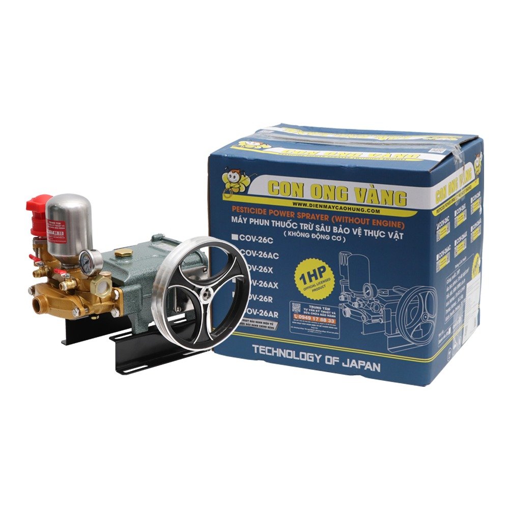 Đầu phun áp lực chất lỏng Con Ong Vàng COV26R 1.0HP Xanh rêu Tìm kiếm Đầu xịt/ Đầu Phun/ Đầu rửa xe/ Đầu nén/ Đầu xịt curoa/ Nén xịt thuốc/ máy phun thuốc trừ sâu chất lượng cao? Đầu phun áp lực Con Ong Vàng COV26R 1.0HP Xanh rêu với động cơ 1.0HP mạnh mẽ, bền bỉ, là giải pháp tối ưu cho mọi công việc. Thiết bị này hỗ trợ đắc lực, giúp nâng cao hiệu quả công việc như: Xịt rửa sàn nhà , Vệ sinh máy móc , Vệ sinh chuồng trại , Phun xịt thuốc trừ sâu , tưới cây , Rửa xe máy, oto , Xịt rửa vệ sinh k