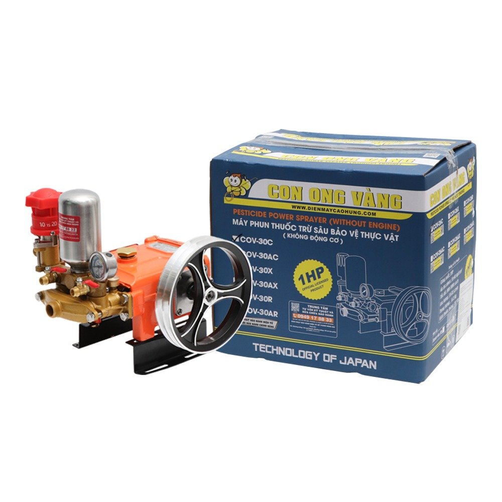 Đầu phun áp lực chất lỏng Con Ong Vàng COV30C 2.0HP Cam Đầu phun áp lực chất lỏng Con Ong Vàng COV30C 2.0HP Cam là thiết bị đa năng, hỗ trợ đắc lực cho nhiều công việc. Với khả năng Đầu xịt/ Đầu Phun/ Đầu rửa xe/ Đầu nén/ Đầu xịt curoa/ Nén xịt thuốc/ máy phun thuốc trừ sâu , sản phẩm này là lựa chọn tuyệt vời. Thiết bị hỗ trợ hiệu quả cho các công việc như: Xịt rửa sàn nhà , Vệ sinh máy móc , Vệ sinh chuồng trại , Phun xịt thuốc trừ sâu , Tưới cây , Rửa xe máy, oto , và Xịt rửa vệ sinh khu công