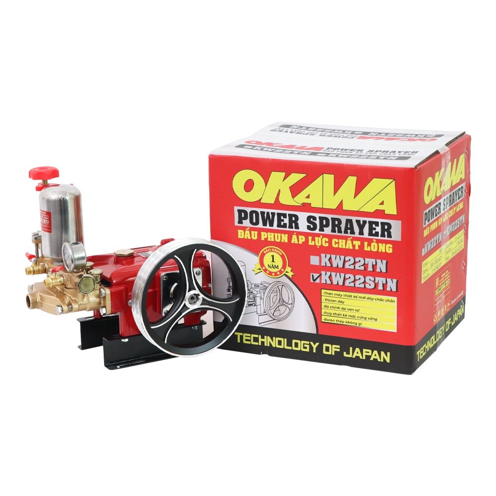 Đầu phun áp lực chất lỏng OKAWA KW22STN 1.0HP Đỏ (hoạt động bằng sức kéo động cơ) Tìm kiếm đầu xịt/ đầu phun/ đầu rửa xe/ đầu nén/ đầu xịt curoa/ nén xịt thuốc/ máy phun thuốc trừ sâu chất lượng? Đầu phun áp lực OKAWA KW22STN 1.0HP Đỏ là giải pháp tối ưu cho mọi nhu cầu. Với sức kéo động cơ mạnh mẽ, thiết bị này giúp bạn hoàn thành công việc nhanh chóng và hiệu quả. Sản phẩm lý tưởng cho các công việc như xịt rửa xe cộ, vệ sinh nhà xưởng, chuồng trại, hay phun xịt thuốc trừ sâu và tưới cây. OKAW