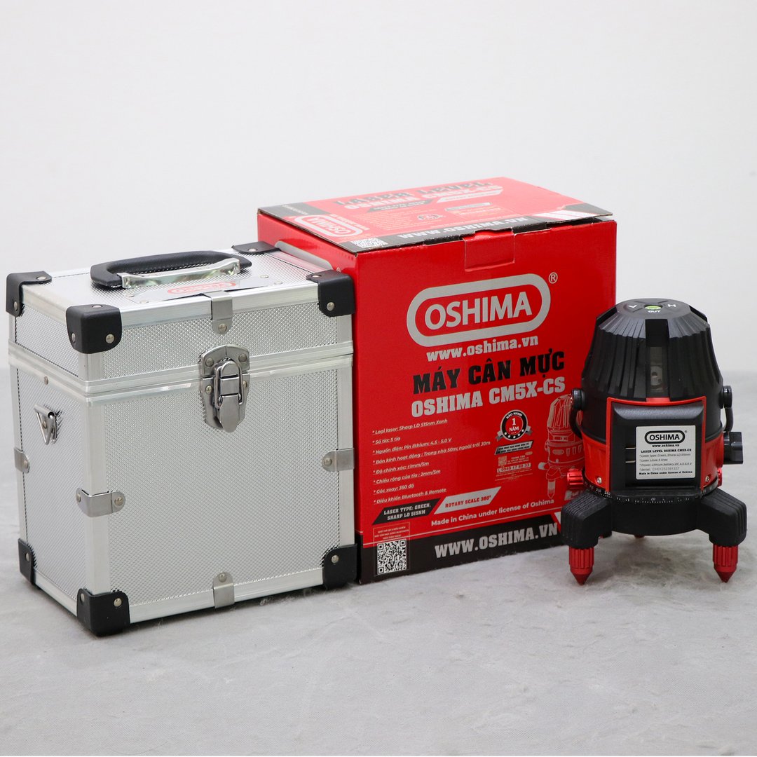 Máy cân mực OSHIMA CM5X-CS Đỏ-đen Tìm kiếm giải pháp cân mực chính xác? Máy laze OSHIMA CM5X-CS Đỏ-đen, hay còn gọi là máy soi , thước laze , máy lade , máy bắn tia , là lựa chọn hoàn hảo cho mọi công trình. Thiết bị đa năng này giúp bạn thực hiện công việc nhanh chóng và chuẩn xác. Với khả năng phát tia laser ngang dọc vuông góc, máy cân mực OSHIMA CM5X-CS Đỏ-đen ứng dụng đa dạng: lắp đặt điện, nội thất, trắc địa, xây dựng nhà tiền chế, nhôm kính, trần thạch cao, ốp lát sàn, chạy chỉ, và lắp tủ