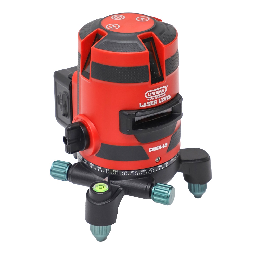 Máy cân mực Oshima CM5X-LS Đỏ Pin lithium Máy cân mực Oshima CM5X-LS Đỏ Pin lithium là thiết bị máy laze/máy soi/thước laze/máy lade/máy bắn tia/cân mực hiện đại, giúp xác định vị trí một cách chính xác. Công dụng chính của máy là phát ra các chùm sáng laser ngang dọc, vuông góc, hỗ trợ tối đa cho công việc. Máy cân mực được ứng dụng rộng rãi trong nhiều lĩnh vực như: lắp đặt hệ thống công tắc, ổ cắm, máng cáp, đi dây, lắp đèn, điều hòa nhiệt độ và các thiết bị điện khác; xác định tim mốc, trắc