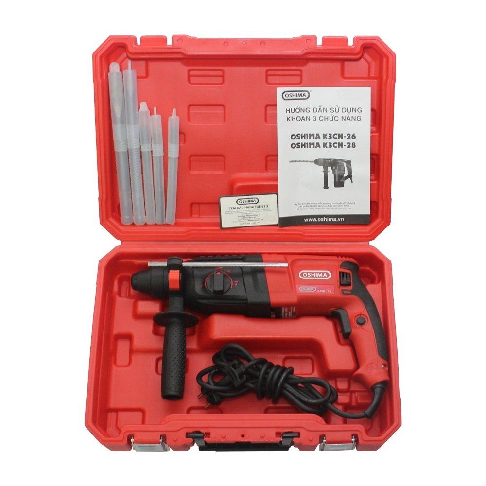 Máy khoan điện Oshima K3CN26 800W Đỏ Điện 1 pha (3 chức năng) Tìm kiếm một công cụ mạnh mẽ và đa năng? Máy khoan điện Oshima K3CN26 là lựa chọn hoàn hảo cho mọi nhu cầu. Với 3 chức năng tiện lợi, sản phẩm này hỗ trợ đắc lực cho thợ chuyên nghiệp và người dùng gia đình trong mọi công việc. Sản phẩm này không chỉ hỗ trợ quá trình làm việc của thợ cơ khí, thợ mộc, xây dựng,... mà còn sử dụng phổ biến tại nhà, trong các công việc sửa chữa đơn giản như khoan lắp đặt các thiết bị máy lên tường, khoan