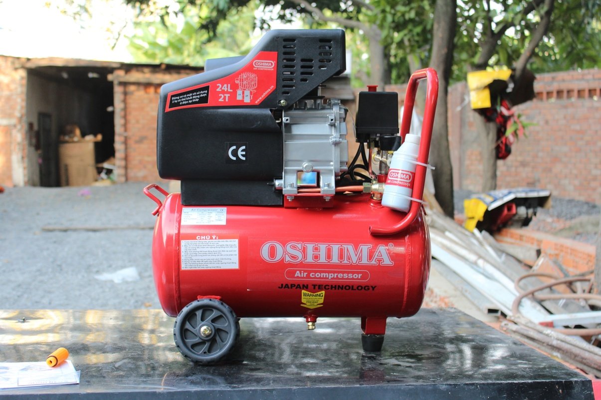 Máy nén khí Oshima 24L 2T 2.0HP Đỏ Điện 1 pha (có dầu, nhanh, dây đồng)