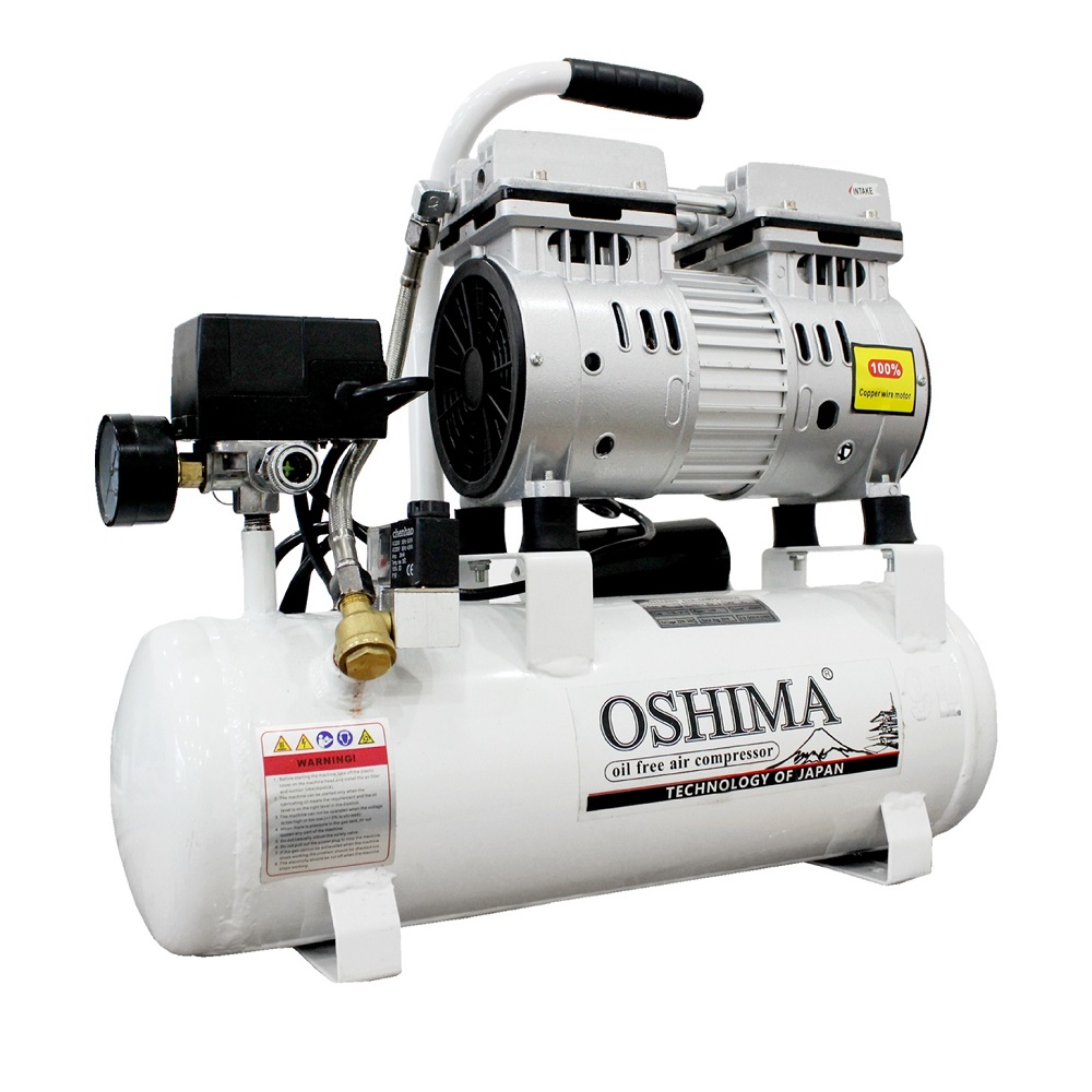 Máy nén khí OSHIMA 9L 1.0HP Trắng sữa Điện 1 pha (không dầu, chậm, dây đồng) Là một thiết bị đa năng, chiếc máy nén khí này là giải pháp lý tưởng cho các nhu cầu máy bơm hơi , máy bơm bánh xe , máy bơm phun sơn , nén khí và bơm khô . Với khả năng tăng áp chất khí, máy giúp tăng năng lượng dòng khí, nén khí lại để tăng áp suất và nhiệt độ, mở ra nhiều ứng dụng thiết thực. Sản phẩm được ứng dụng rộng rãi trong các công việc như vệ sinh xe cộ, làm sạch bụi bẩn hiệu quả, cung cấp oxy cho các quy trì