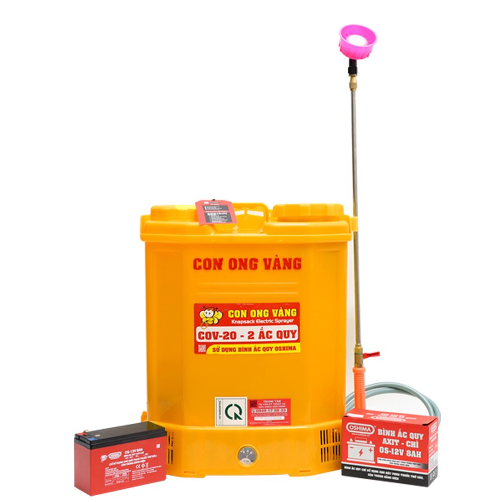 Máy phun thuốc trừ sâu, côn trùng điện Con Ong Vàng COV20-2 ắc qui Vàng Bình ắc qui 12V8Ah