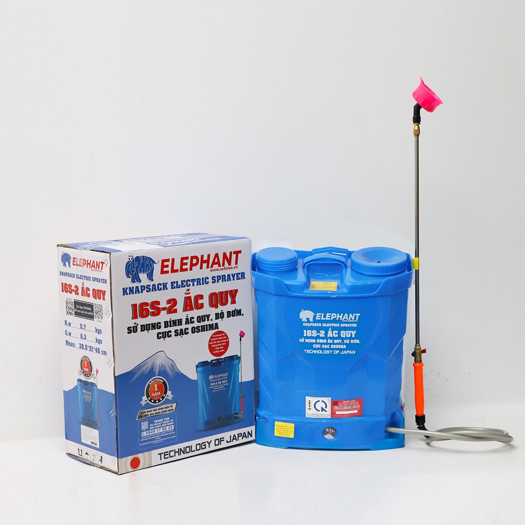 Máy phun thuốc trừ sâu, côn trùng điện ELEPHANT 16S-2 ắc quy Xanh Bình ắc quy 12V8Ah/12V12Ah