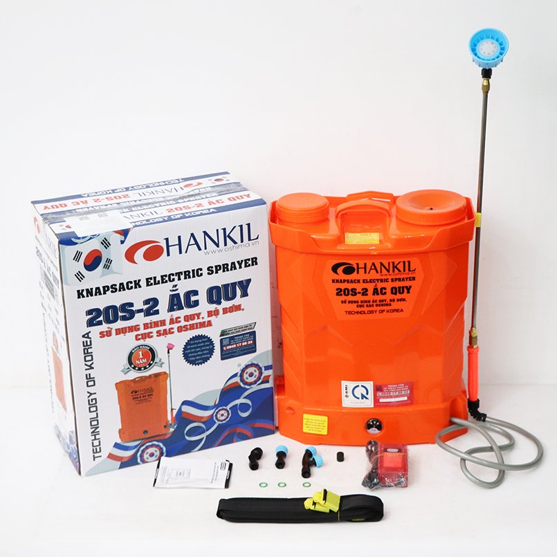 Máy phun thuốc trừ sâu, côn trùng điện HANKIL 20S-2 ắc quy Cam Bình ắc quy 12V8Ah/12V12Ah