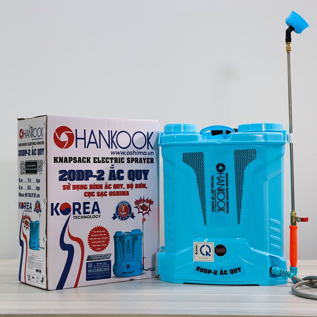Máy phun thuốc trừ sâu, côn trùng điện HANKOOK 20DP-2 ắc quy Xanh Bình ắc quy 12V12Ah