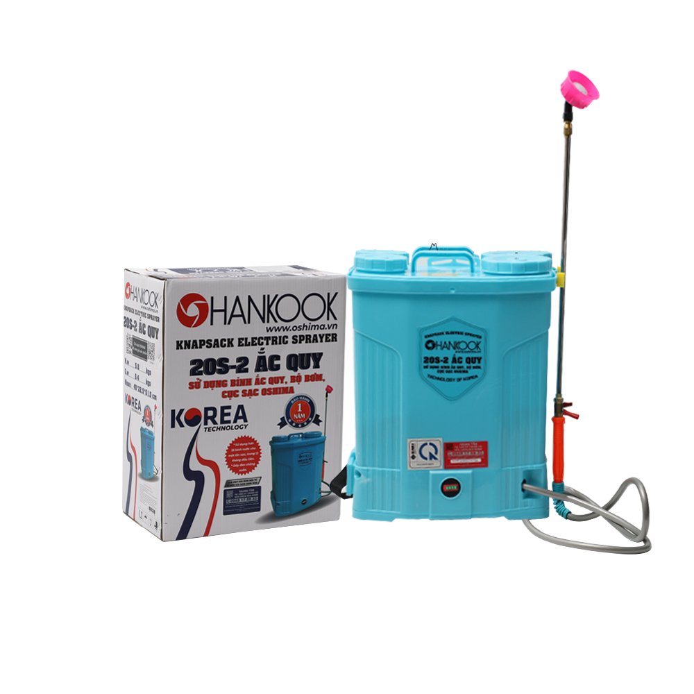 Máy phun thuốc trừ sâu, côn trùng điện HANKOOK 20S-ắc quy Xanh Bình ắc quy 12V8Ah