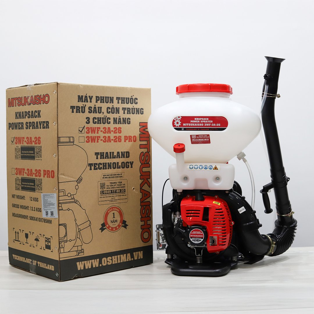 Máy phun thuốc trừ sâu, côn trùng động cơ MITSUKAISHO 3WF-3A-26 41.5cc /2.13kW Đỏ 2 thì (3 chức năng) Tìm kiếm giải pháp hiệu quả cho vườn tược? Bình xạ MITSUKAISHO 3WF-3A-26 là lựa chọn lý tưởng, mang đến hiệu suất vượt trội. Sản phẩm ứng dụng rộng rãi cho việc phun thuốc trừ sâu , diệt côn trùng , phun phân bón , và tưới cây . Với khả năng phun đa dạng, bình xạ này đáp ứng mọi nhu cầu chăm sóc. Sở hữu ngay bình xạ MITSUKAISHO để trải nghiệm sự khác biệt và hiệu quả vượt trội!