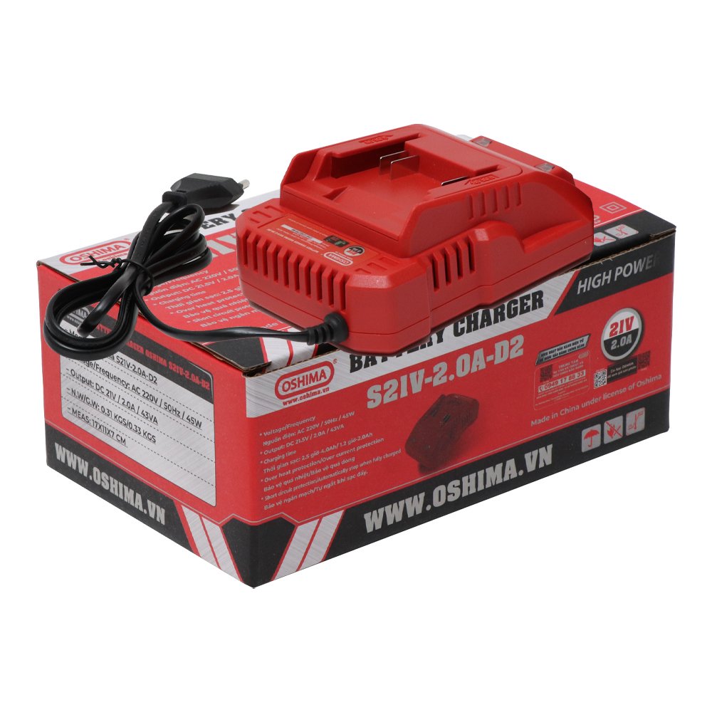 Sạc Oshima S21V-2.0A-D2 Bạn đang tìm kiếm một giải pháp sạc pin hiệu quả và đáng tin cậy? Sạc Oshima S21V-2.0A-D2 là lựa chọn lý tưởng, được thiết kế để cung cấp nguồn năng lượng ổn định và an toàn cho các thiết bị của bạn. Với công nghệ tiên tiến, sản phẩm này đảm bảo quá trình sạc pin diễn ra nhanh chóng và bảo vệ thiết bị khỏi các rủi ro. Sạc Oshima S21V-2.0A-D2 được ứng dụng rộng rãi trong việc sạc pin các loại pin Lithium-ion, thường được sử dụng trong máy khoan, máy cắt, máy mài và nhiều t