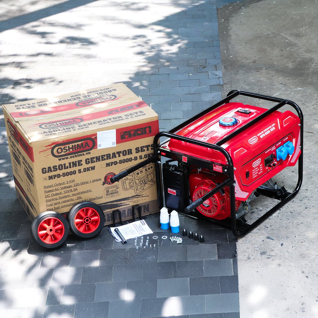 Tổ máy phát điện OSHIMA MPD-5000 5.0KW Đỏ 4 thì (chạy xăng)