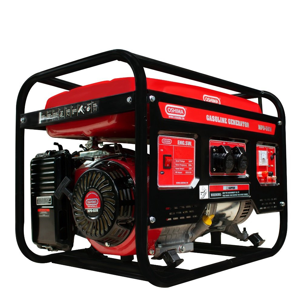 Tổ máy phát điện OSHIMA MPD5KW 5.0KW Đỏ 4 thì (chạy xăng, có bánh xe, tay cầm) Bạn đang tìm kiếm giải pháp phát điện dự phòng hiệu quả? Máy phát điện OSHIMA MPD5KW là lựa chọn hoàn hảo, đảm bảo nguồn điện ổn định cho mọi nhu cầu. Sản phẩm này là lựa chọn lý tưởng cho nhiều ứng dụng. Sản phẩm này có thể cung cấp điện cho các hoạt động làm việc, sinh hoạt hàng ngày, hỗ trợ dây chuyền sản xuất, làm nguồn điện dự phòng cho hệ thống bơm, công trình xây dựng, và hệ thống nuôi trồng thủy sản. Đảm bảo n